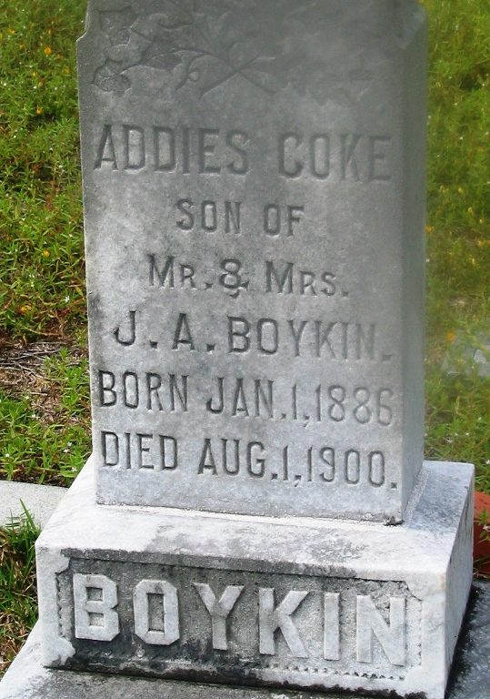Addies Coke Boykin was born on 01 Jan 1886 in South Carolina, USA a child of James Addison Boykin and Sarah Elizabeth Bridges Boykin.
