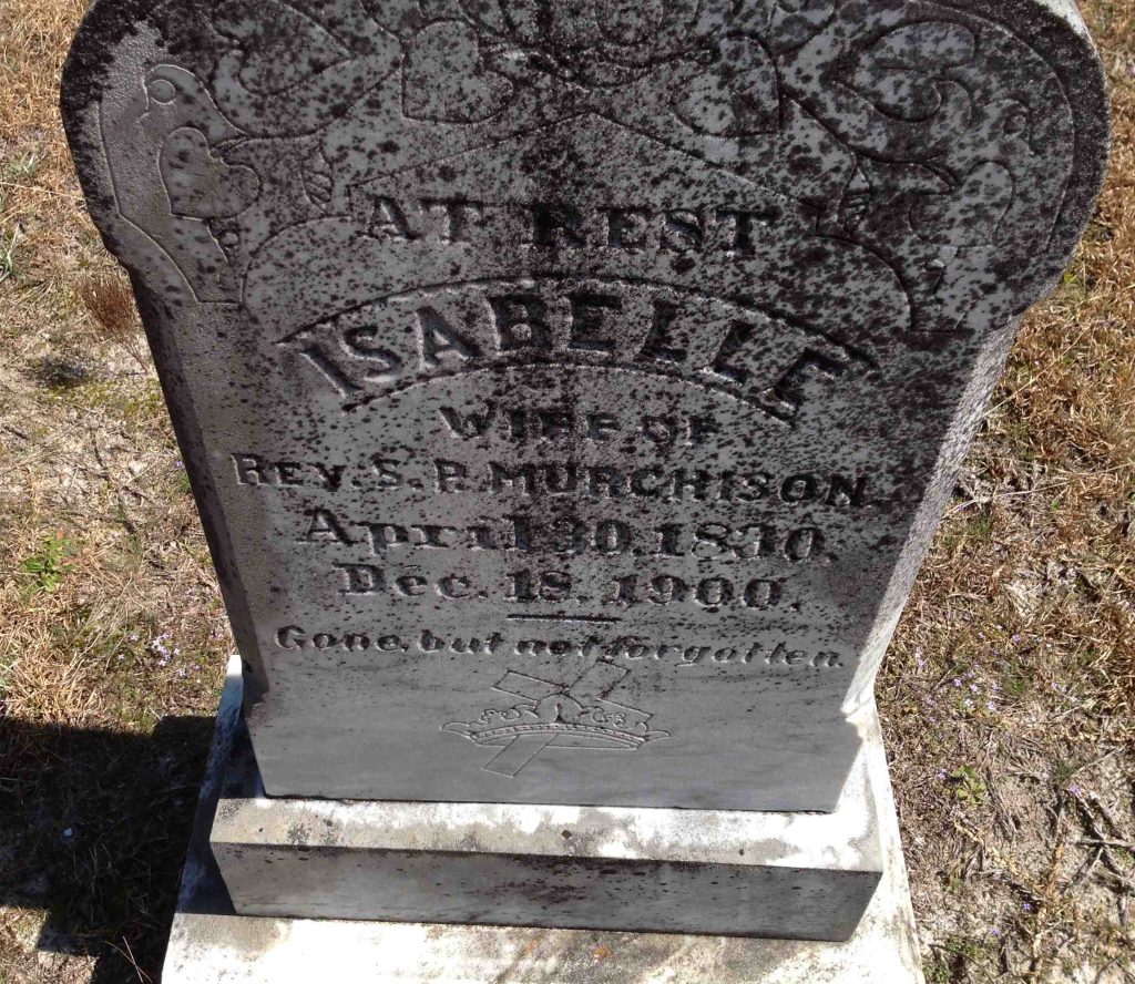Mrs. I Murchison was counted in the census on 01 Jun 1900 in De Kalb, Kershaw, South Carolina, USA, as a 70-year-old, female, widowed, white, Mother-in-law. Also in the home were; her son-in-law, R James Smith; her daughter, Lulie Smith; and her grandchildren, Carrie Smith, Annie Smith, Colan Smith, Charles Smith, Leonard Smith, Lulia Smith, Lelie Smith, and Koger Smith.