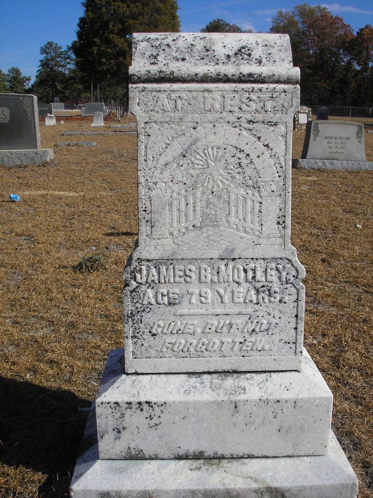 James B “Jim” Motley was born in Jun 1827 in Kershaw, South Carolina, USA a child of John Motley Jr and Mary A Gettys Motley.