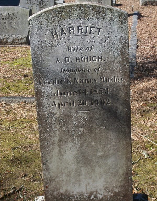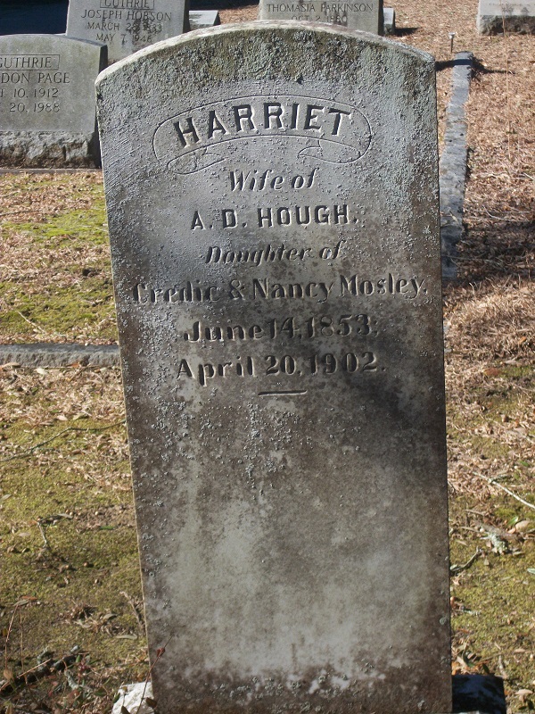 On March 12, 1929, Harriet Mosley was mentioned as the mother on the obituary of Mahala Holloway.