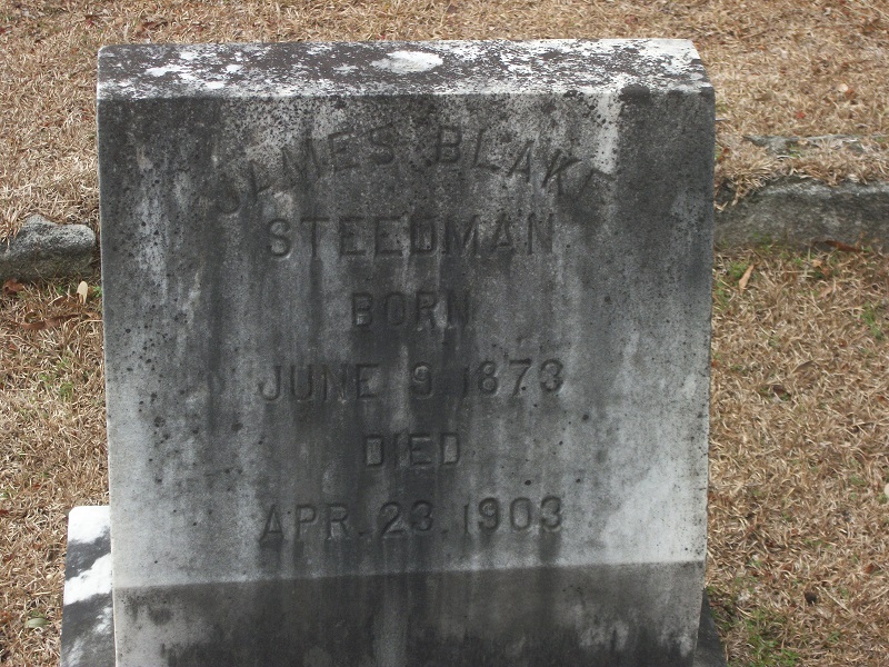James B. Steedman was counted in the census on 03 Jun 1880 in Union, South Carolina, USA, as a 7-year-old, male, single, white, son. Also in the home were; his father, Jno B. Steedman; his mother, Sarah B. Steedman; his siblings, Richard Y Steedman and Bessie Steedman; and his aunt, Rebecca McDowell.