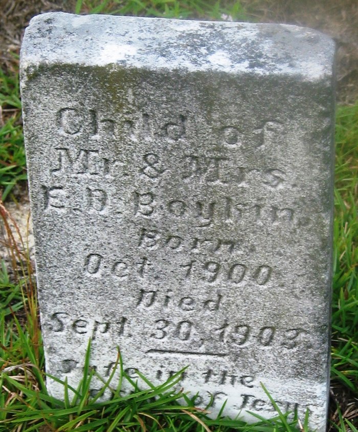 Child Boykin was born in Oct 1900 a child of E D Boykin.