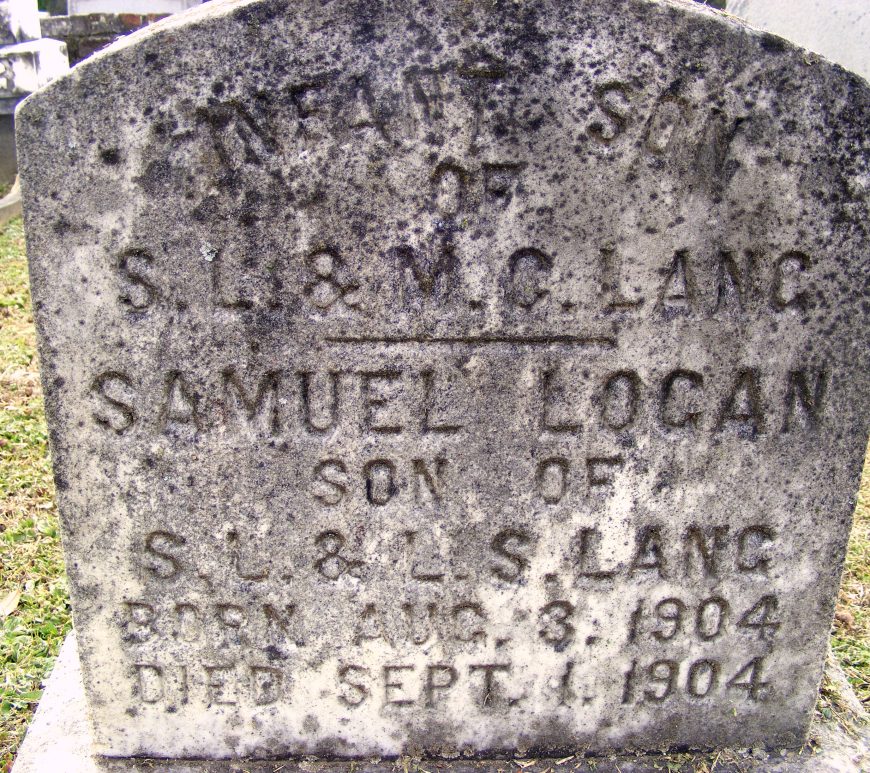 Samuel Logan Lang was born on 03 Aug 1904 in Camden, Kershaw, South Carolina, USA as the first child of Samuel Logan Lang and Louisa Salmond Lang. He died on 01 Sep 1904. He was buried in Camden, Kershaw, South Carolina, USA at Quaker Cemetery. Continue reading Samuel Logan Lang