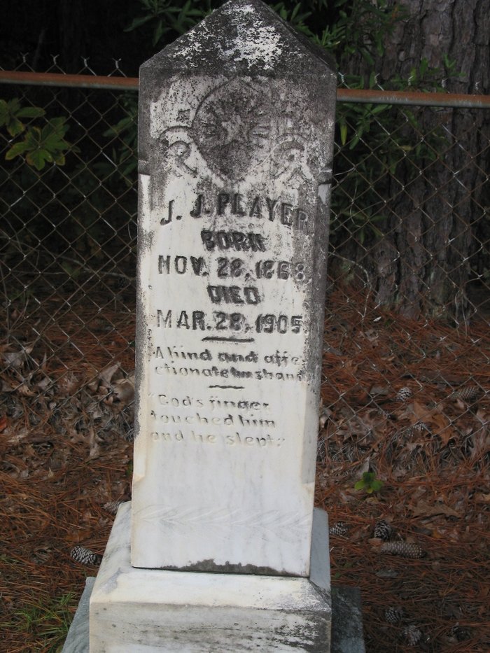 John J Player was born on 28 Nov 1868 in South Carolina, USA a child of John Dial “Jack” Player Jr and Elizabeth “Sally” Reynolds Player.