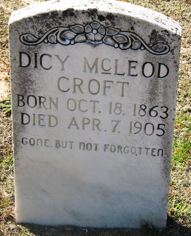 On September 29, 1888, Dicy McLeod was mentioned as the mother in the delayed brith record of Luther Levern Croft.