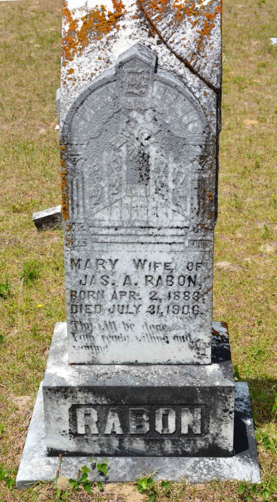 Mary was born on 02 Apr 1883. She married James Andrew Rabon between 1900-1906.