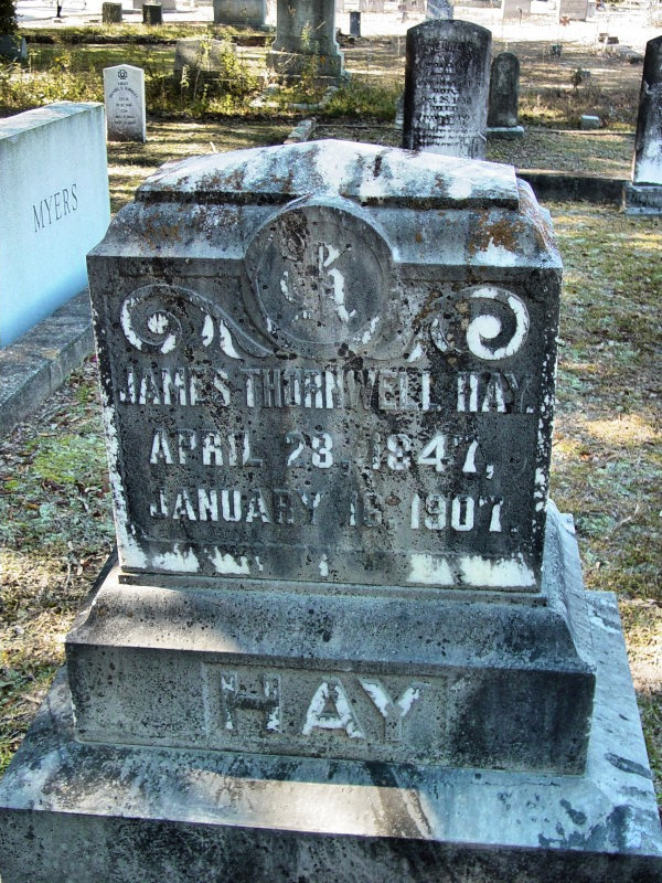 James Thornwell Hay was born on 23 Apr 1847 in Columbia, Richland, South Carolina, USA a child of Samuel Hutson Hay Sr and Mary Susan Peck Hay.