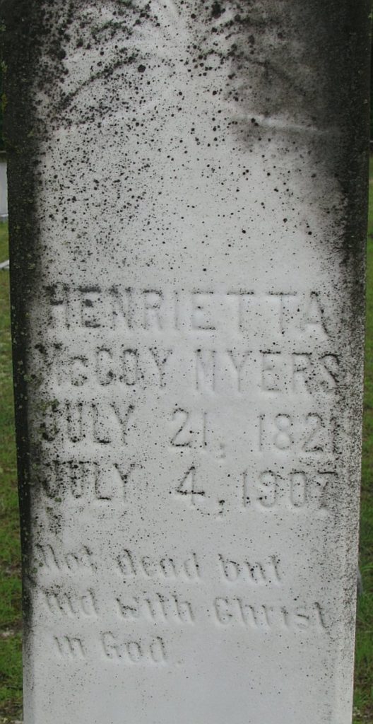 Henrietta Myers was counted in the census on 17 Oct 1850 in Kershaw, South Carolina, USA, as a 28-year-old, female, white. Also in the home were; Wash Myers; Sally Myers, Susan Myers, Mary Myers, and John Myers,