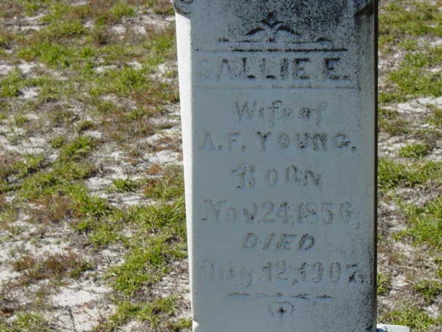 Sarah Young was counted in the census on 22 Jun 1900 in Buffalo, Kershaw, South Carolina, USA, as a 44-year-old, female, married, white, wife. Also in the home were; her husband, Frank Young; and their children, Willis Young, Andrew Young, Thomas Young, Lewis Young, Florence Young, Lula Young, Ella Young, Alex Young, Walter Young, Amelia Young, Julius Young, Alma Young, and Clearance Young.