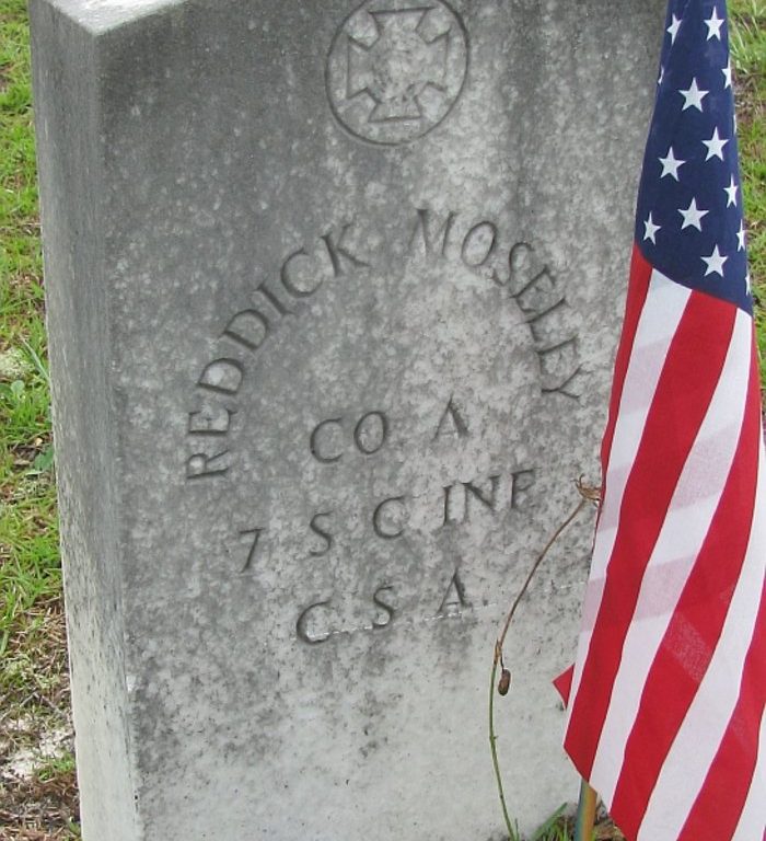 In 1863, Reddick Moseley was mentioned on the South Carolina Civil War Service Records of Confederate Soldiers, 1861-1865.
