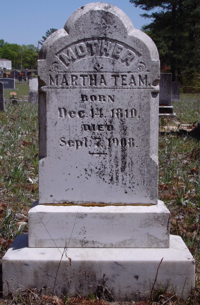 Martha Team was counted in the census on 09 Aug 1850 in Kershaw, South Carolina, USA as a 39 year old female, white. Also in the home, Jas Team, Adam Team, Sarah Team, Catherine Team, Jas Team, Powell Team, John Team and Whiley Team.