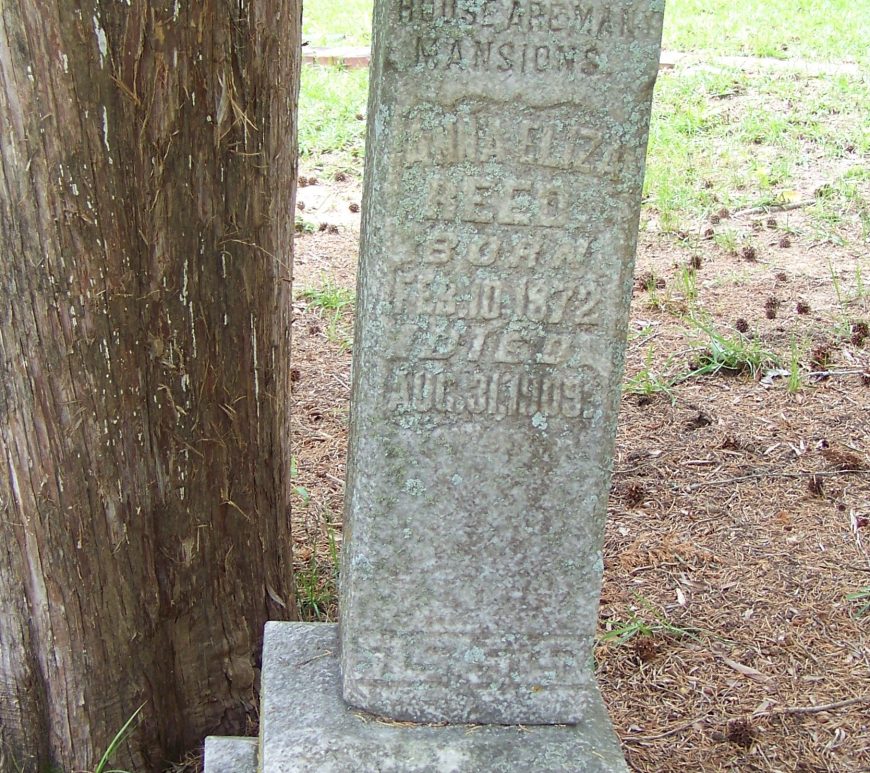1872 Anna Eliza Reed was born on 10 Feb 1872. 1909 She died on 31 Aug 1909. Anna Eliza Reed was buried in Camden, Kershaw, South Carolina, USA at Cedars Cemetery. Continue reading Anna Eliza Reed