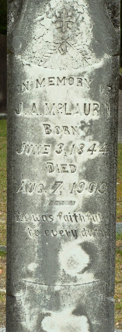 1844 John A. McLaurin was born on 03 Jun 1844 in Kershaw, South Carolina, USA a child of John J McLaurin and Catharine McPherson McLaurin. 1850 John McLaurnin was counted in the census on 04 Oct 1850 in Kershaw, South Carolina, USA, as a 6-year-old, male, white. Also in the home were; J J McLaurnin, Catherine McLaurnin, Angus McLaurnin, Catherine McLaurnin, Danl McLaurnin, Christian McLaurnin, … Continue reading John A. McLaurin