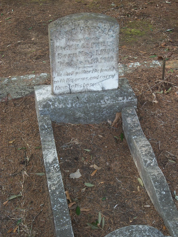 She died on 15 Jan 1910. She was buried in Camden, Kershaw, South Carolina, USA at Quaker Cemetery.