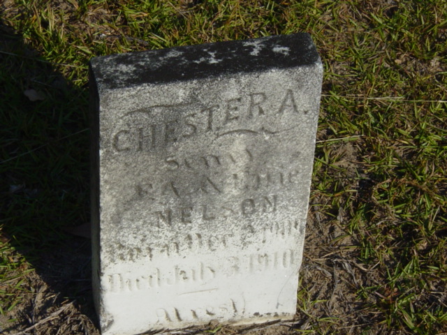 Chesley Nelson was counted in the census on 25 Apr 1910 in Wateree, Kershaw, South Carolina, USA, as a 4-month-old, male, single, white, son. Also in the home were; his father, Frank Nelson; his mother, Effie Nelson; and his brother, Avery Nelson.