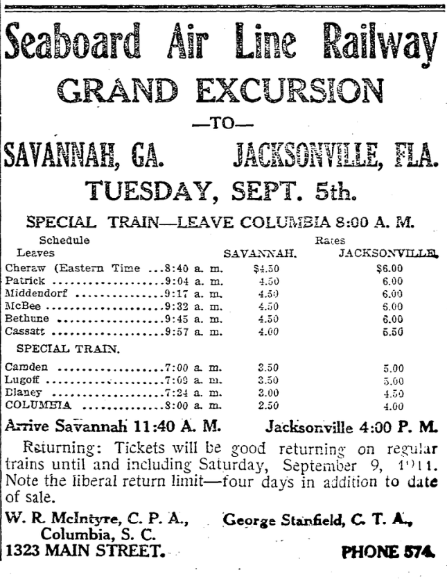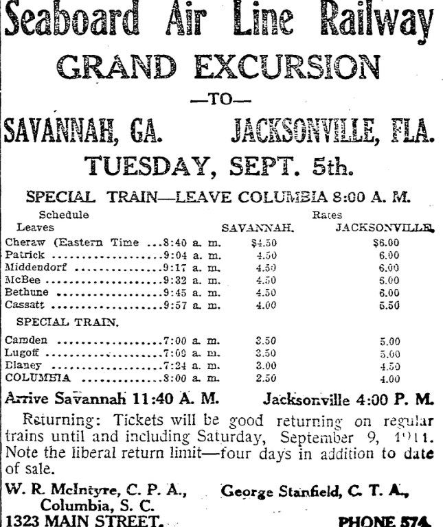 Special Train – Leave Columbia 8:00 A.M.