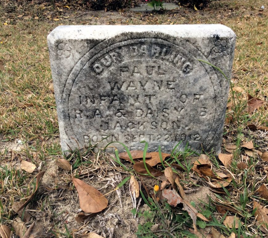 Paul Wayne Jackson was born on 22 Sep 1912 in Lugoff, Kershaw, South Carolina, USA a child of Ransom A Jackson and Daisy B Jackson Jackson. He died on 28 Sep 1912. He was buried in Lugoff, Kershaw, South Carolina, USA at Hardshell Cemetery. Continue reading Paul Wayne Jackson