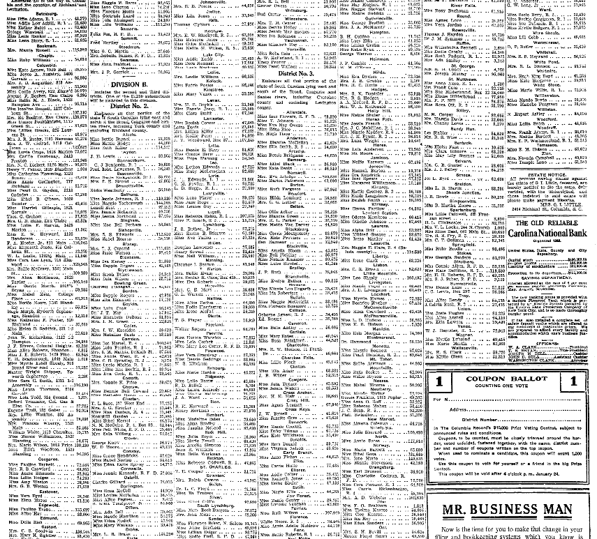 (*The entirety of this article has not been transcribed only information regarding Blaney) Blaney Mrs. T. J. Cupstid . . . . . . . 113,835Miss Susie Watson . . . . . . . 92,410 Continue reading Is Your Favorite Candidate a Leader in This Contest?