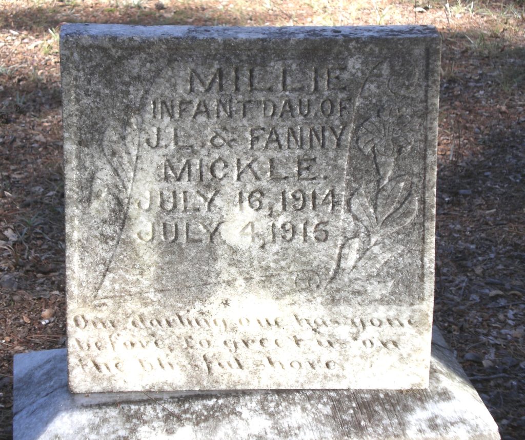 Millie Mickle was born on 16 Jul 1914 a child of John Lewis Mickle and Fannie McCaa Mickle.