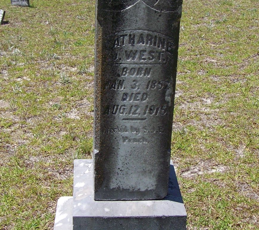 Catharine J West was born on 03 Jan 1852. She died on 12 Aug 1915 and was buried in Kershaw, South Carolina, USA at Providence Baptist Church Cemetery. Tombstone Information: Continue reading Catharine J West