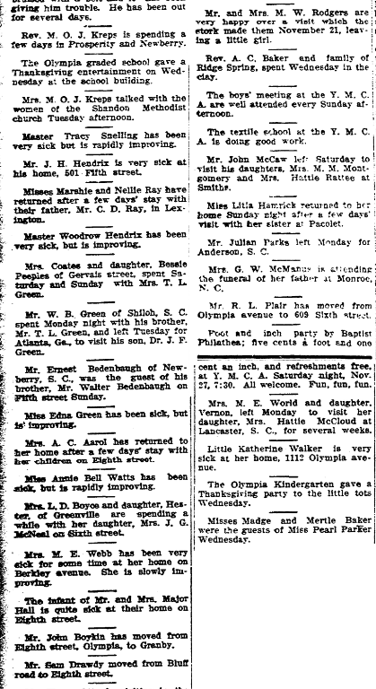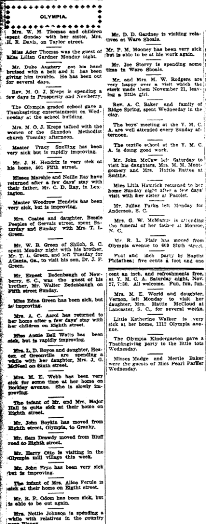 Mr. Harry Otto is visiting in the Olympia mill village this week.
