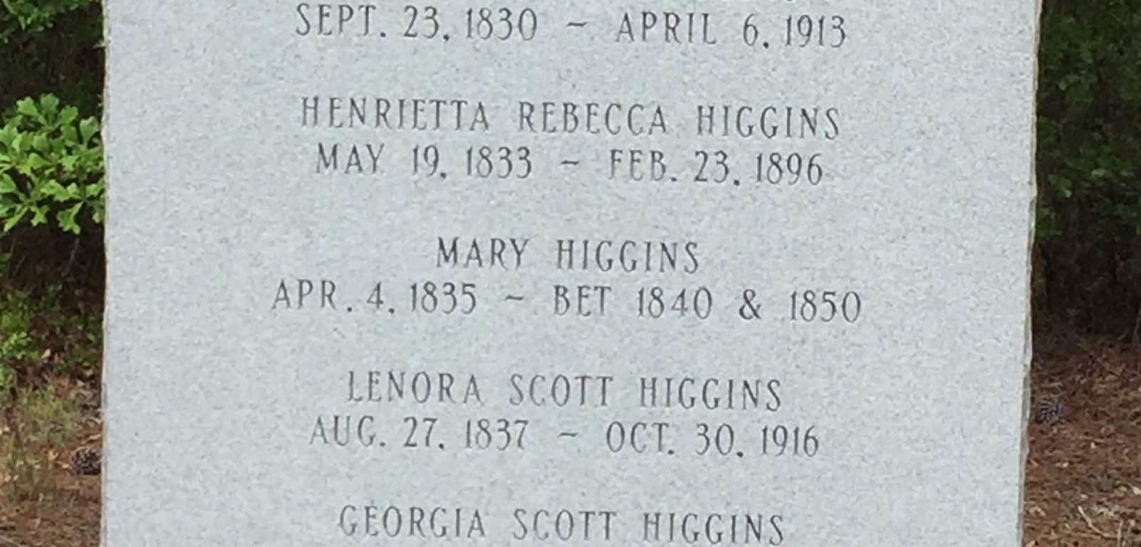 Lenora Scott Higgins was born on 27 Aug 1837 in Kershaw, South Carolina, USA a child of John O’Cain Higgins and Jane Rebecca Scott Higgins.