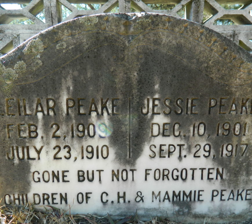 1901 Jessie Peake was born on 10 Dec 1901 a child of Charnel H Peake and Mamie Kelly Peake. 1910 Jessie Peak was counted in the census on 23 Apr 1910 in Wateree, Kershaw, South Carolina, USA as an 8 year-old male, Single, white, son. Also in the home was his father; Charnel Peak, mother, Mamie Peak, and siblings; Albert Peak, William Peak, Collie Peak, … Continue reading Jessie Peake