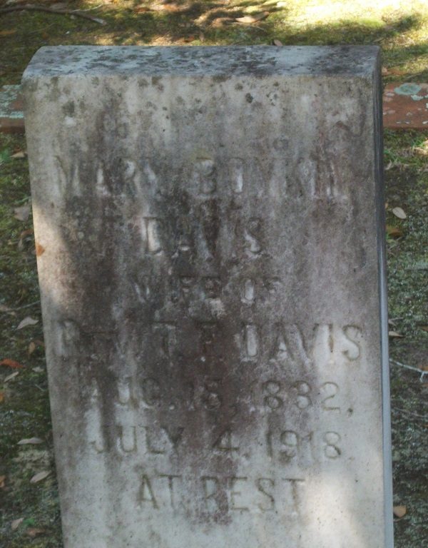 April 28, 1949, Mary Boykin McCaa was mentioned as the mother in the death record of Thomas Frederick Davis.