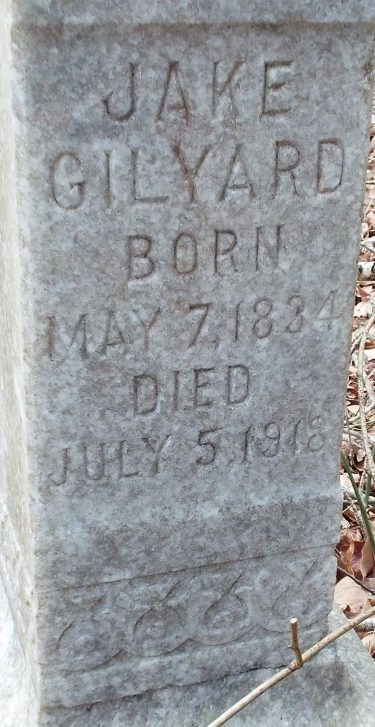 He died on 05 Jul 1918. Jake Gilyard was buried in Camden, Kershaw, South Carolina, USA at Wesley Chapel UMC Cemetery.
