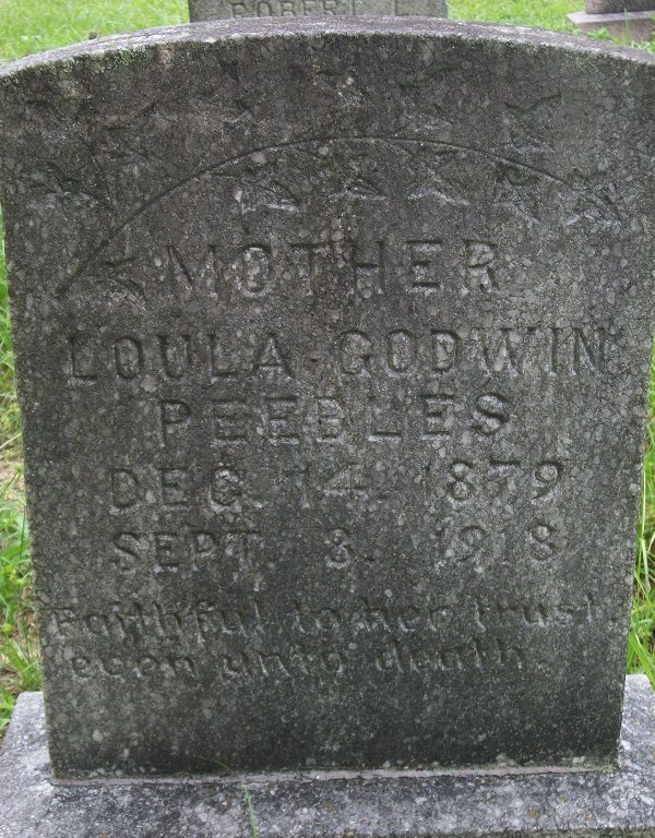 On February 17 1924, Lou Godwin was mentioned as the mother on the death certificate of Henry L. Peebles.