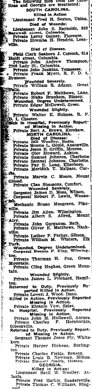 The following men from the Carolina and Georgia are mentioned: