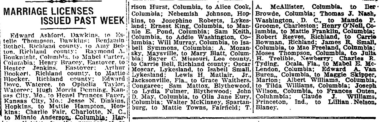 Raymond A. Bouknight, ColumbiatoMabel Carter, Columbia