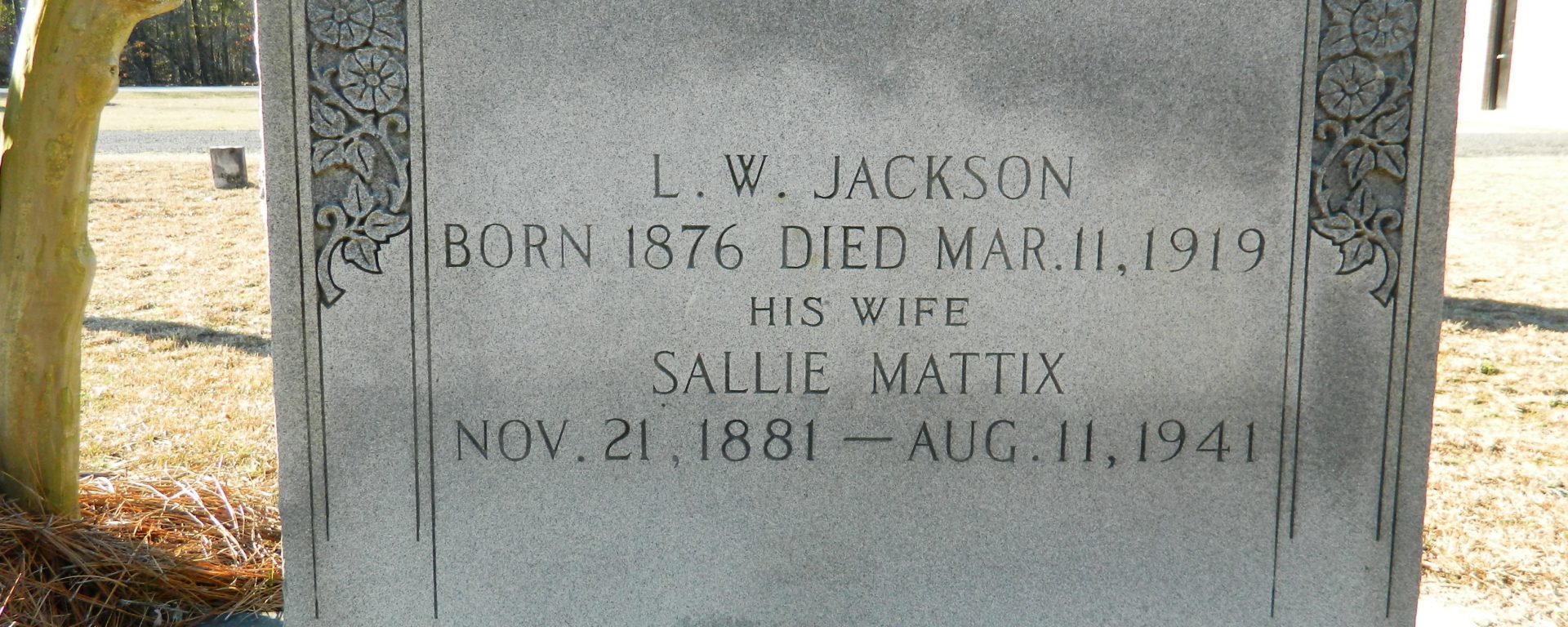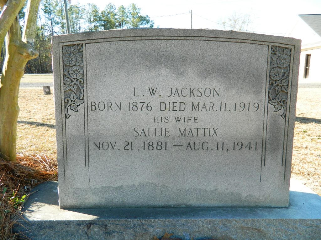 Lewis Jackson was counted in the census on 09 Jun 1900 in Wateree, Kershaw, South Carolina, USA, as a 25-year-old, male, married, white, head of household. Also in the home was his wife, Sallie Jackson; and their son Benjamine Jackson.