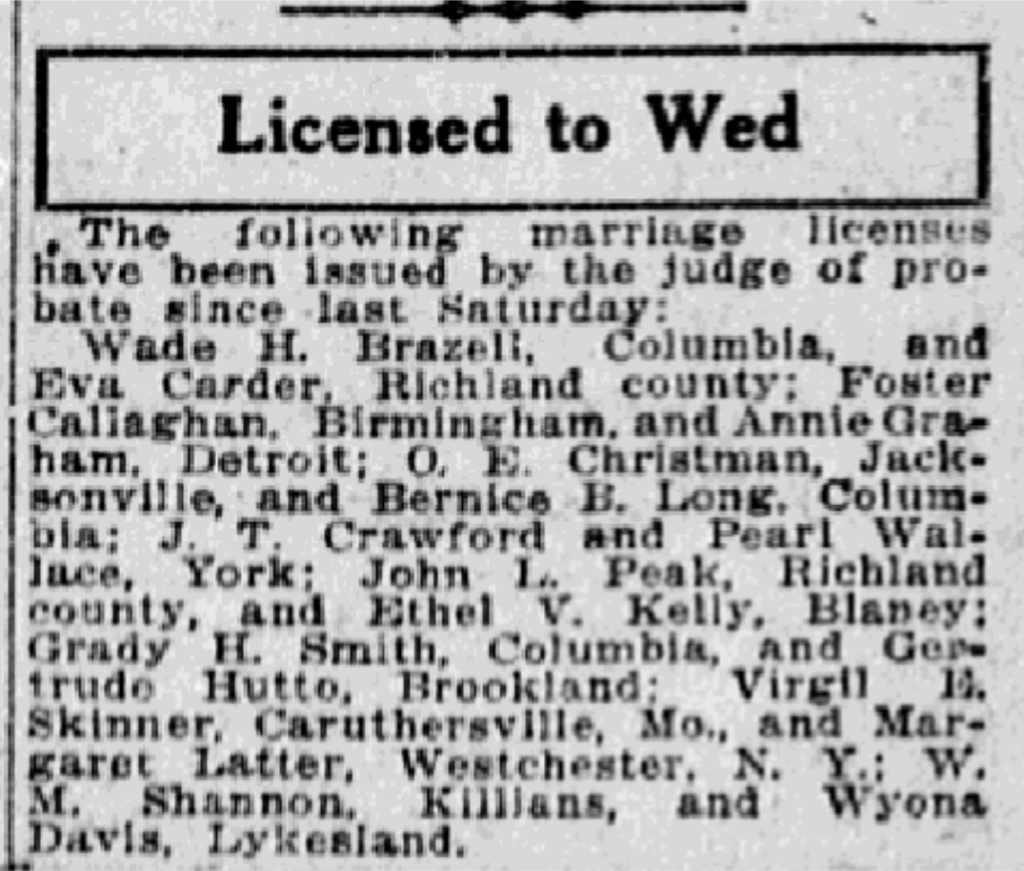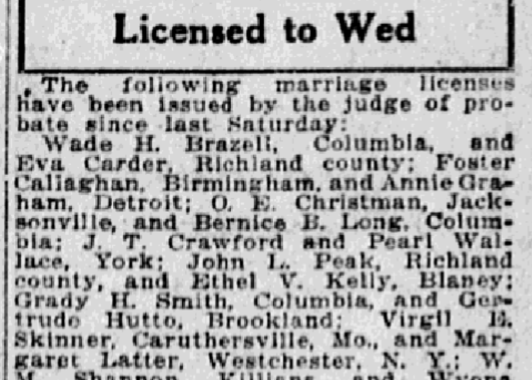 Wade H. Brazell, ColumbiaandEva Carder, Richland county