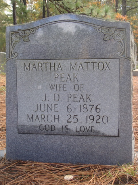 On February 15, 1933, Martha Mattox was mentioned as the mother on the death record of James Peak.