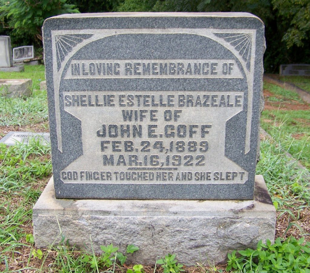 On March 20, 1922, Shelly Goff was mentioned in the newspaper article MOTHER AND CHILD DIE ON SAME DAY.