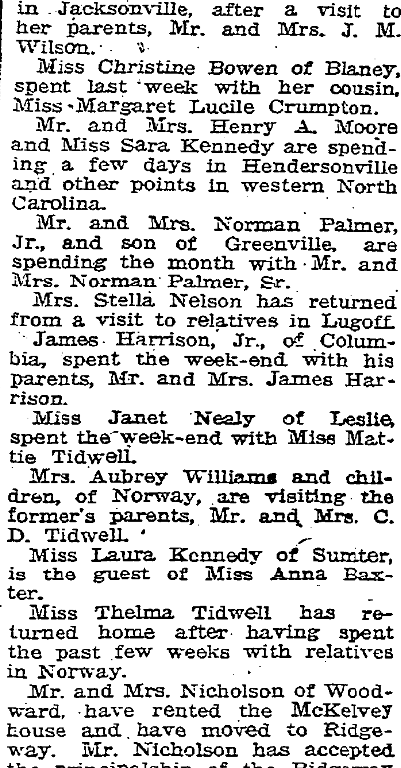 Mrs. Aubrey Williams and children, of Norway, are visiting the former’s parents, Mr. and Mrs. C. D. Tidwell.