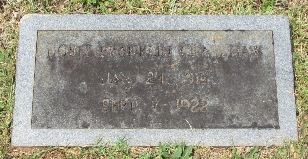 On September 7, 1922, Doris Cranshaw was listed in the newspaper article “Little Cranshaw Girl Dies From Effects of Poisonous Snake Bite.”