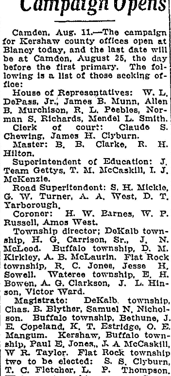 Brings Guest Home Miss Lula Mae Creighton has returned home from a week’s visit at the home of Mr. and Mrs. A. C. Sanders in Blaney. She was accompanied home by little Lila Sanders and Ruby Sanders for a week’s visit. Visitors Expected Mr. and Mrs. J. E. Drakeford of Wadesboro, N. C., are expected in Columbia today to visit the latter’s parents, Mr. and … Continue reading Columbia Society, Women’s Clubs, Philanthropies