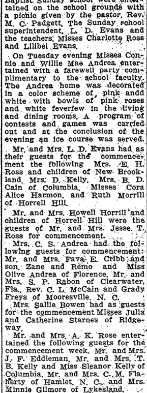 Special to The State. Blaney, June 13. – The Blaney schools came to a very successful close Monday evening after a session of nine months. The finals began Friday evening with a play by the seventh grade and graduation exercises for the grammar school with an address by Howell Morrell of Horrell Hill. Medals for Honor Marks were given to Barney Cooper, Minnie Grace Watson, … Continue reading Blaney Schools Close