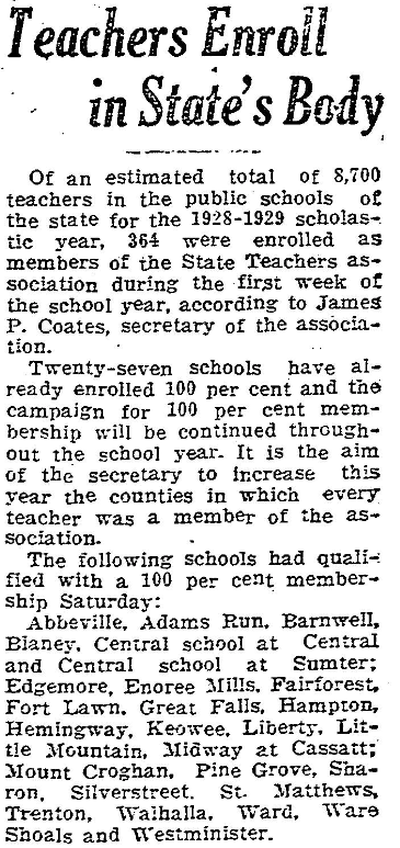Of an estimated total of 8,700 teaches in the public schools of the state for the 1928-29 scholastic year, 364 were enrolled as members of the State Teachers association during the first week of the school year, according to James P. Coates, secretary of the association. Twenty-seven schools have already enrolled 100 per cent and the campaign for 100 per cent membership will be continued … Continue reading Teachers Enroll in State’s Body