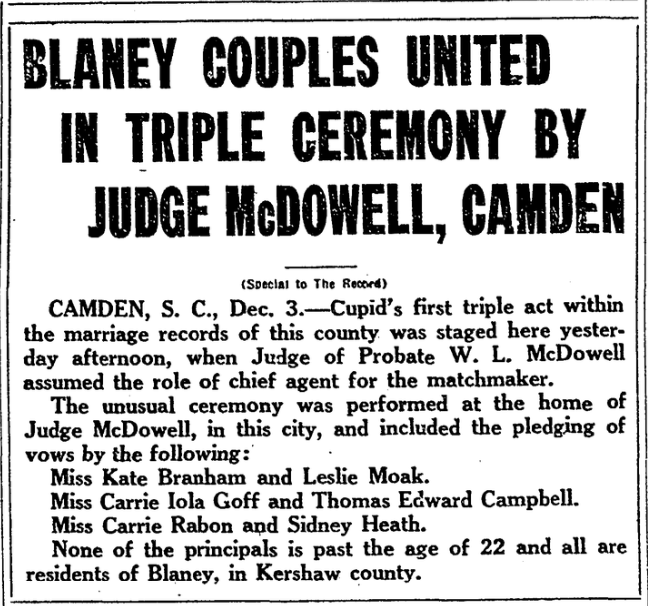 1860 Sam Richard Kirkland was born March, 9, 1860, a son of Margaret Sarah McRae Kirkland. 1910 On November 18, 1910, Sam R. Kirkland was listed in the newspaper article “Sam Kirkland On Trial For Life.“ 1928 Sam Richard Kirkland passed away on December 22, 1928. He was buried in Concord Baptist Church Cemetery at Lugoff, Kershaw County, South Carolina. Tombstone Information: Continue reading Sam Richard Kirkland