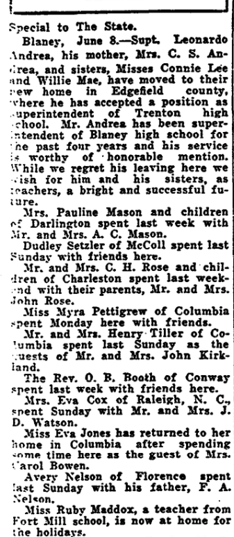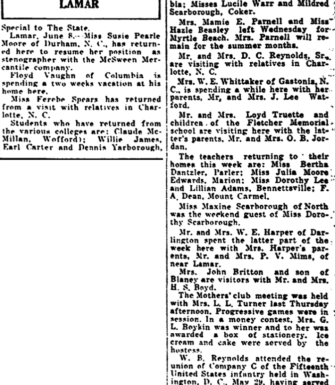Nine Community Gatherings Draw Attendance of Near Two Thousand. Last month 1,765 Negro farmers, their wives and children attended nine community monthly club meetings at Macedonia near Ridgeway, Mill Creek near Lykesland, Weston, Eastover, Edgewold near English, Columbia Route 2, Gadsden, St. Luke near Hopkins, and Shady Grove near Blaney under the leadership of J. E. Dickson, county farm agent for negroes of Richland county. … Continue reading Negroes Attend Club Meetings