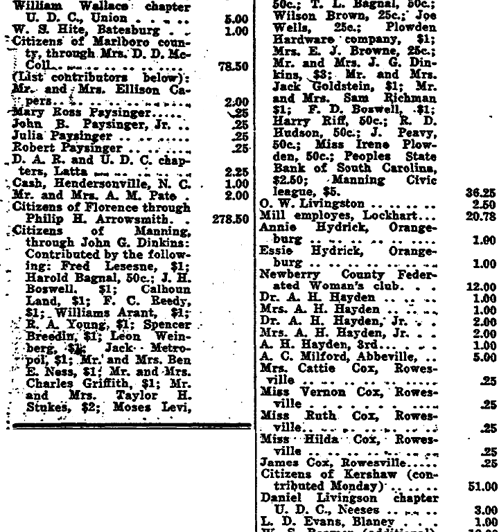W. S. Hite, Batesburg . . . . 1.00