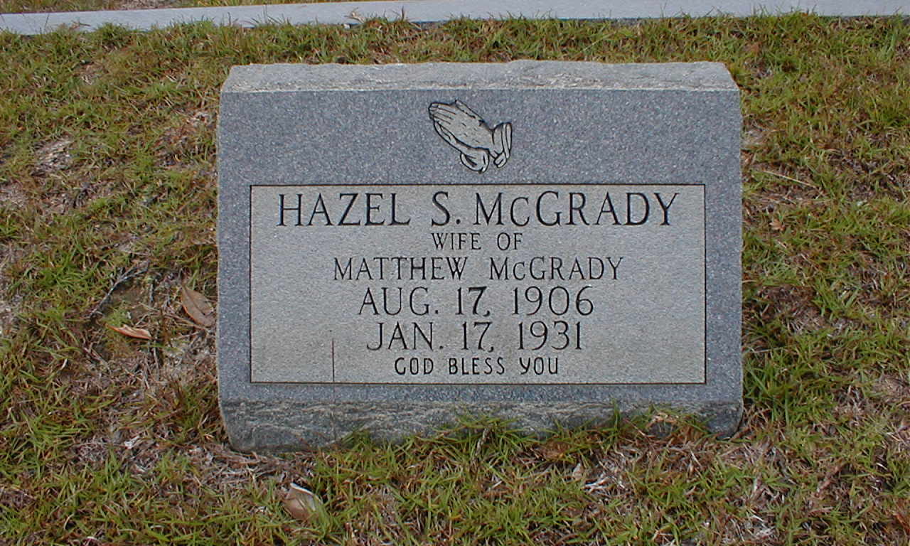Hazel Summer McGrady was born August 17, 1906 in South Carolina, daughter of James Oscar Summer and Mattie Isabell Lindler Summer.