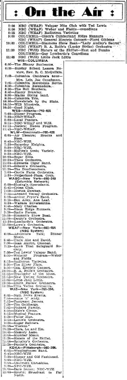 7:30 – NBC – WEAF.