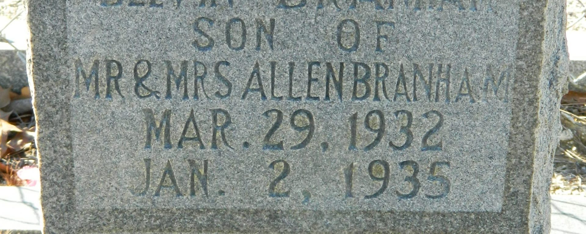 On January 2, 1935, Belvin Branham was listed in the newspaper article “Boy, 3, Wounded By Brother, 5, Dec. 1, is Dead.”