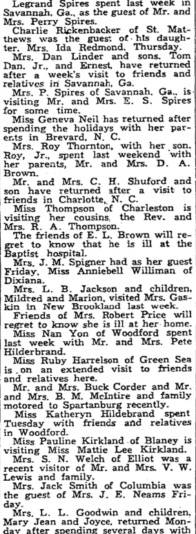 1934 Von Branham was born in Mar 1934 a child of Lester Branham. 1935 He died on 16 Jan 1935 in West Columbia, Lexington, South Carolina, USA at 122 Green street. Von Branham was buried on 17 Jan 1935 in Elgin, Kershaw, South Carolina, USA at Union Baptist Church Cemetery INFANT RITES TODAY Funeral services for Von Branham, 10-months old son of Mr. and Mrs. … Continue reading Von Branham