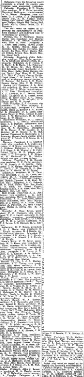 Other Clubs on Record Favoring Renomination of Roosevelt. Delegates from the following county precincts to attend the county convention were announced yesterday: Palmetto: President, E. F. Nipper; vice president, W. F. Hicks; secretary, Raymond Ballington; committeeman, A. G. Hixon, Delegates, John Tennant, G. P. Loftis, C. H. Daingerfield, Royce Huff, H. B. Murrary, Ruben Easler, John Holley, Sam Corbett, Ernest Tarlton, Sidney Hill, Earley Neal, … Continue reading COUNTY PRECINCTS APPOINT DELEGATES
