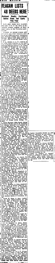 Forty-eight deeds were recorded this past week at the office of R. Andrew Feagan, auditor of Richland county, at the Township auditorium.